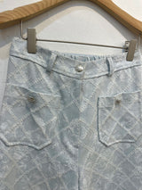 Cropped denim jeans featuring delicate embroidery for a casual yet stylish look.