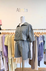 This set features a top and bottom in a sleek and versatile shade of gray. The top is crafted with high-performance fabric that offers excellent breathability and moisture-wicking properties, keeping you comfortable during workouts or any physical activity. It is designed with a modern and sporty aesthetic, providing a flattering fit and enhancing your athletic performance. The matching bottom completes the set with a comfortable and supportive elastic waistband, allowing for unrestricted movement. The grey color adds a touch of sophistication and versatility, making it easy to pair with other pieces in your sportswear collection.