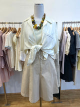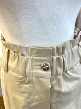 Structured pleats with a wide-leg silhouette in a chic khaki tone for a modern, effortless look.