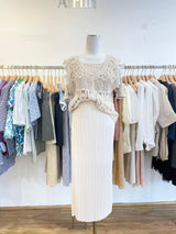 This elegant white skirt is a versatile piece that can be worn for both casual and formal occasions.