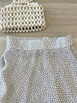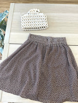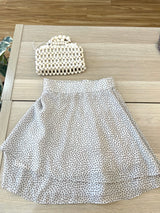 A lightweight high-waist skirt with an all-over mini print. Features a soft, flowy silhouette and a comfortable elastic waistband, perfect for everyday wear or summer outings. Available in two versatile colors.