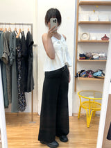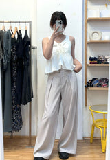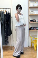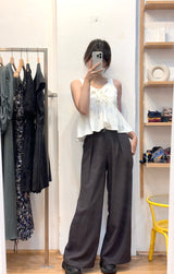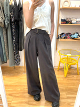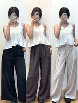 Belted wide pants in black, beige, and grey offer a versatile and stylish wardrobe staple. These pants feature a relaxed, flowy silhouette that tapers slightly at the ankle, providing a comfortable yet polished look. The wide-leg design offers freedom of movement, while the belted waist adds structure and allows for an adjustable fit.