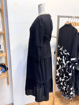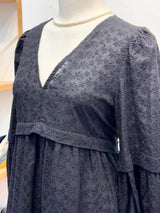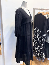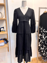 This stunning black maxi dress features a flattering V-neckline and long sleeves, offering an elegant and sophisticated silhouette. The delicate floral pattern adds a touch of femininity and charm, making it perfect for both formal and semi-formal occasions. The flowing fabric enhances the graceful movement of the dress, while its timeless design ensures it remains a wardrobe staple for years to come.