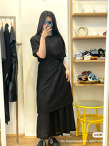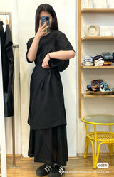 Turn heads with this black statement dress featuring unique tie detailing that adds a bold, modern edge. Designed with a flattering silhouette and artistic elements, this piece blends elegance with creativity. Perfect for evening events, parties, or fashion-forward street style, it’s a standout choice for those who love design with a twist.