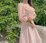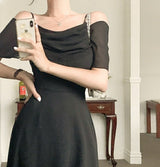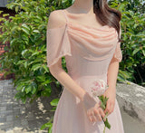 Indulge in the allure of our chiffon off-shoulder dress. Crafted with delicate chiffon fabric, this dress is designed to showcase elegance and femininity. The off-shoulder style adds a touch of sophistication, making it a versatile choice for various occasions. Embrace the ethereal charm of chiffon in a dress that effortlessly combines grace and trendiness, ensuring you stand out with timeless beauty.