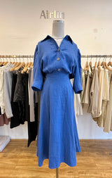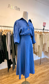 Crafted from high-quality denim material, this blue maxi dress offers a unique twist on a classic silhouette. The denim fabric provides a durable and structured feel, while still allowing for a soft and breathable fit. With its maxi length and relaxed fit, this dress effortlessly exudes a laid-back and effortlessly cool vibe.