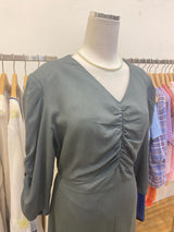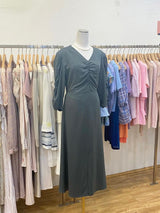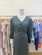 This elegant deep green dress features a sophisticated design with puff sleeves and long sleeves, adding a touch of classic charm. The rich, dark green hue enhances its refined appearance, making it perfect for formal occasions or special events. The puff sleeves contribute to a graceful silhouette, while the long sleeves provide additional elegance and coverage.