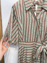 Add a touch of retro charm to your wardrobe with this green and brown striped dress. Featuring a flattering silhouette and eye-catching color contrast, this dress offers both comfort and style for any occasion. Made from soft, breathable fabric, it’s perfect for everyday wear or a casual weekend outing. Pair it with sneakers for a laid-back vibe, or with boots for a chic, effortless look.