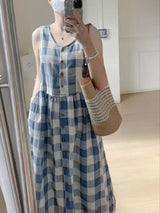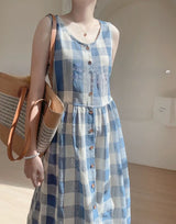 Linen checked dress designed for hot summer days and relaxed holiday looks. Light, breathable, and effortlessly chic.