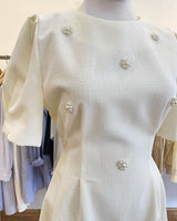 Introducing our Pearl Elegance Dress, a stunning blend of sophistication and charm.