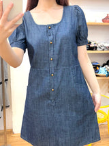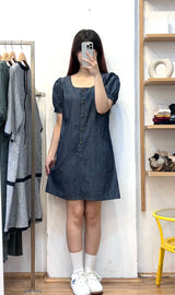 Elevate your wardrobe with our puff sleeve denim short dress. Crafted from soft, durable denim, this dress features voluminous puff sleeves that add a touch of femininity and flair. The fitted bodice highlights your silhouette, while the playful short length makes it perfect for casual outings or summer gatherings. Complete with a subtle back zipper and pockets for practicality, this versatile piece can be styled with sandals for a laid-back look or dressed up with heels for a night out. Embrace effortless style with this must-have addition to your collection.