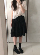 Long mid-summer skirt available in black and white. Perfect for daily casual wear and easy to mix and match with any outfit.