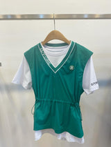 This white golf shirt features a clean, classic look with a touch of unique style. The shirt is designed for optimal comfort and performance on the course. A distinctive detail is the lobster design on the back, adding a playful and eye-catching element to the overall design. Perfect for standing out while maintaining a refined appearance.