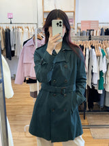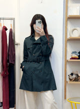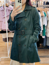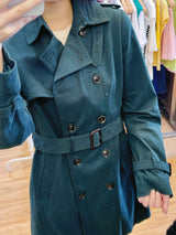 Elevate your style with this chic green trench coat. Featuring a sleek black button closure, this short trench is perfect for layering and adds a pop of color to any outfit. Its tailored fit accentuates the silhouette while offering comfort and versatility. Ideal for transitional weather, it pairs effortlessly with both casual and formal looks. Make a bold statement with this essential piece in your wardrobe.