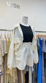Introducing our "White Windbreaker Coat," a stylish and practical outerwear piece that combines fashion with functionality. This coat features a sleek and versatile design in a crisp white color, perfect for adding a touch of sophistication to your outfit.
