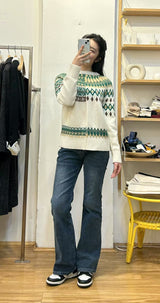 Embrace the winter season with our high-quality knitted sweater, crafted from premium materials to ensure warmth and comfort. Featuring a unique pattern that stands out with its intricate detailing, this sweater combines style with practicality. Perfect for layering or wearing on its own, it’s a versatile addition to any wardrobe, designed to keep you cozy while making a fashion statement.