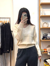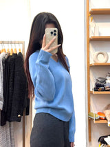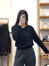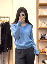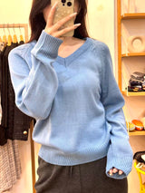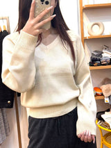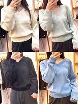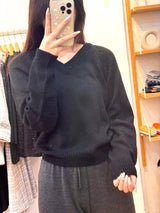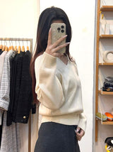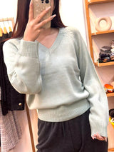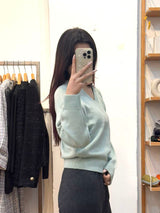 Timeless and effortlessly chic, our Classic V-Neck Knit Sweater is a wardrobe essential for all seasons. Crafted from soft, breathable yarn, it features a flattering V-neckline and a relaxed fit that’s perfect for layering or wearing on its own. Available in four versatile shades—Black, Cream, Mint, and Blue—this piece combines comfort with understated elegance.