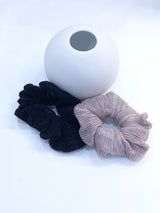 Turn heads with this bold and eye-catching scrunchie, made with a slightly glossy fabric that catches the light just right. Its thick and voluminous design adds texture and flair to any hairstyle. Available in two standout colors: elegant rose gold and classic black.