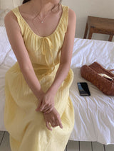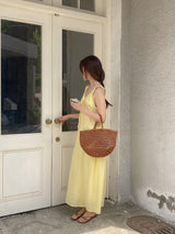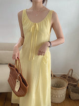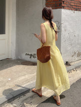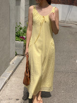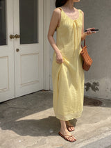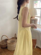 Gorgeous and relaxed linen summer dress in a stunning yellow color. Light, breathable, and perfect for holidays or those hot summer days.