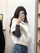 Wrap yourself in warmth with the hoodie jacket. This plush short-sleeve jacket is the perfect layering piece for chilly autumn and winter days. Featuring a cozy hood, smooth front zipper, and a relaxed silhouette, it’s made for effortless comfort and casual style. Available in two versatile shades—classic black and soft ivory—it’s your go-to choice for staying snug without sacrificing style.