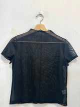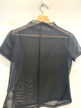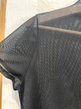 A plain black silk short-sleeve shirt with a smooth, lustrous finish and no patterns.