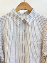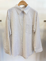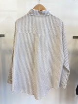 A timeless black and white striped long-sleeve shirt crafted for everyday wear. Made from soft, breathable cotton with a relaxed, slightly tailored cut. The bold vertical stripes add a minimalist yet stylish touch, making it perfect when paired with denim, chinos or a skirt. Ideal for casual outings, work-from-home days, or layering under a jacket in cooler weather.