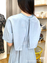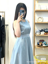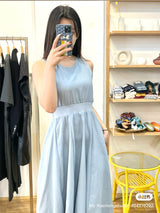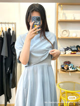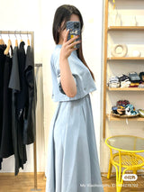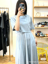 This elegant blue faux two-piece dress combines the look of a layered outfit with the ease of a single piece. Designed to give the illusion of a stylish top-and-skirt combo, it features a flattering fit and modern silhouette. Perfect for work, casual outings, or semi-formal occasions, this dress blends fashion and convenience in one chic piece.
