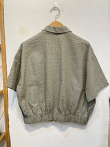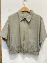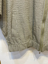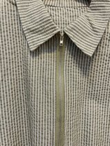 Add a sporty twist to your wardrobe with this green striped short-sleeve zip-up jacket. Featuring a clean silhouette and dynamic stripe detailing, this piece combines casual comfort with athletic-inspired style. The front zipper allows for easy layering, while the short sleeves make it ideal for transitional weather or laid-back outings. Whether worn zipped up or open over a tee, this jacket brings a fresh, energetic vibe to your everyday look.