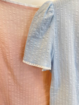 This lace-trim button-up blouse features elegant lace detailing and classic buttons for a refined, feminine look. Made with lightweight, breathable fabric, it feels cool and comfortable throughout the day. Its versatile design pairs beautifully with jeans, skirts, or tailored pants—perfect for casual outings, office wear, or date nights.