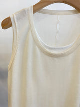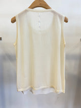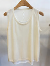 A chic sleeveless knit crop top designed with a stylish layered-look detail. Its soft, stretchy fabric offers a comfortable fit while the faux two-piece design adds dimension without the bulk. Perfect for pairing with high-waisted jeans, skirts, or casual trousers for a clean and modern outfit.