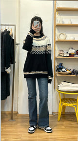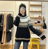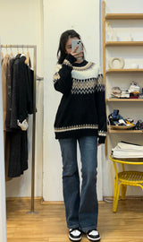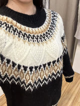 Wrap yourself in warmth with this black and white knitted pullover sweater, highlighted by traditional Nordic-style patterns. Crafted from soft, breathable fabric, it combines classic winter charm with everyday comfort — perfect for cozy days or casual outings.