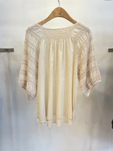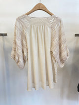 An elegant pleated mid-sleeve blouse designed to bring effortless sophistication to your everyday wardrobe. Crafted from lightweight, flowy fabric, it drapes beautifully while the delicate pleats add a refined feminine touch. Perfect for office wear, weekend outings, or pairing with tailored trousers or skirts for a polished look.
