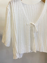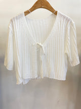 - Features: Tie-front closure, soft stretch knit, lightweight