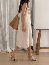 This beige sleeveless dress features a delicate print for a timeless, elegant look. Made from lightweight, breathable fabric, it’s perfect for warm weather. The sleeveless design keeps you cool, while the flowing silhouette offers effortless style. Ideal for casual outings, vacations, or summer gatherings.