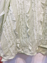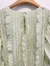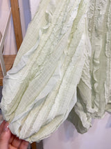 Fresh and feminine, this green blouse features soft petal sleeves that add a delicate, romantic touch. The short-sleeve design makes it perfect for warm-weather days, while the unique silhouette elevates your everyday look. Pair it with skirts, jeans, or trousers for a breezy, effortless outfit.