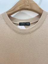 A versatile, sand-colored t-shirt featuring a classic crew neckline and a comfortable, slim-fit silhouette. Made from soft, breathable cotton, this simple short-sleeve staple is perfect for effortless everyday layering.