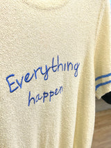 Bring good vibes to your everyday look with the Everything Happens Tee. Featuring soft pastel yellow tones and bold blue lettering, this tee adds a cheerful, laid-back feel to any outfit. The phrase “Everything happen” gives off a relaxed, go-with-the-flow energy — perfect for casual days, coffee runs, or summer strolls. Made from breathable cotton, it’s as comfy as it is cool.
