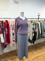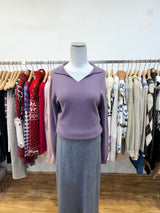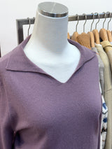 Our luxurious purple long sleeve top is crafted from a blend of cashmere and wool. Soft to the touch and exquisitely warm, it drapes elegantly with a slight sheen, offering both comfort and style. Perfect for cooler days, its rich purple hue adds a touch of sophistication to any outfit, making it a versatile wardrobe essential.