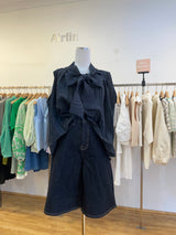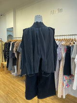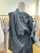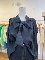 Sleeveless Blouse with Crinkled Texture and Bow Tie