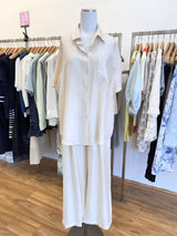 Elevate your summer wardrobe with these flowy beige pants, combining comfort and sophistication. Featuring a relaxed fit and lightweight fabric, they’re perfect for casual strolls or laid-back outings. Pair them with the matching shirt for a cohesive, elegant look or style them with your favorite tops for versatile, everyday wear.