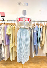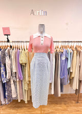 Introducing our Grey Checked Midi Skirt, a stylish and versatile piece that showcases the timeless charm of a checked pattern.