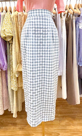 Whether you're dressing up for a business meeting or going for a casual day out, the Grey Checked Midi Skirt is designed to elevate your style with its classic and versatile design. Embrace the chic and sophisticated appeal of this skirt and make it a go-to piece in your wardrobe for effortless elegance.