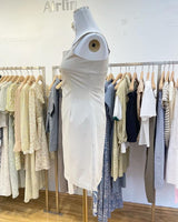 The accompanying dress completes the set with its graceful design and versatility. Made from soft and comfortable fabric, the dress showcases a flattering silhouette that flares gently from the waist. Its timeless white color adds a touch of sophistication, while the length falls elegantly to create a feminine and graceful look.