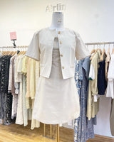 Elevate your style with our White Short Sleeve Blazer and Dress Set, a perfect combination of sophistication and elegance. This set includes a tailored short sleeve blazer and a complementary dress, creating a cohesive and fashionable ensemble.